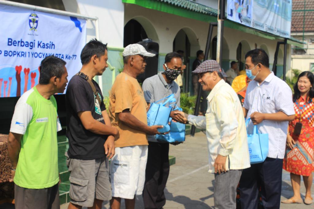 "Selain baksos pembagian 150 paket sembako, kegiatan lain adalah doa bersama. Sembako berasal dari siswa (dengan menyisihkan uang jajan mereka), sekolah, dan didukung alumni angkatan 81. Paket sembako tersebut diperuntukkan bagi warga sekitar sekolah yang membutuhkan, orangtua siswa yang kurang mampu, tukang becak, tukang parkir, dll," kata Kepala SMP BOPKRI 1 Yogyakarta, Wildan Nor Tri Wicaksono, S.Pd.T di sela-sela puncak HUT ke-77 SMP BOPKRI 1 Yogyakarta di halaman sekolah, Kamis(10/8).