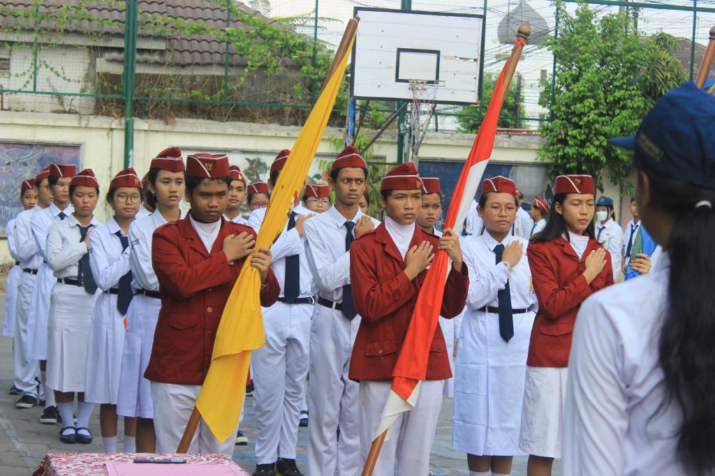 Upacara bendera hari Senin, 30 Oktober 2023 di SMP BOPKRI 1 Yogyakarta tampak spesial. Upacara bendera pada hari tersebut juga menjadi upacara pelantikan Pengurus OSIS untuk periode 2023/2024.